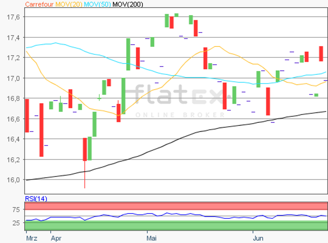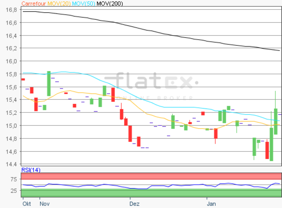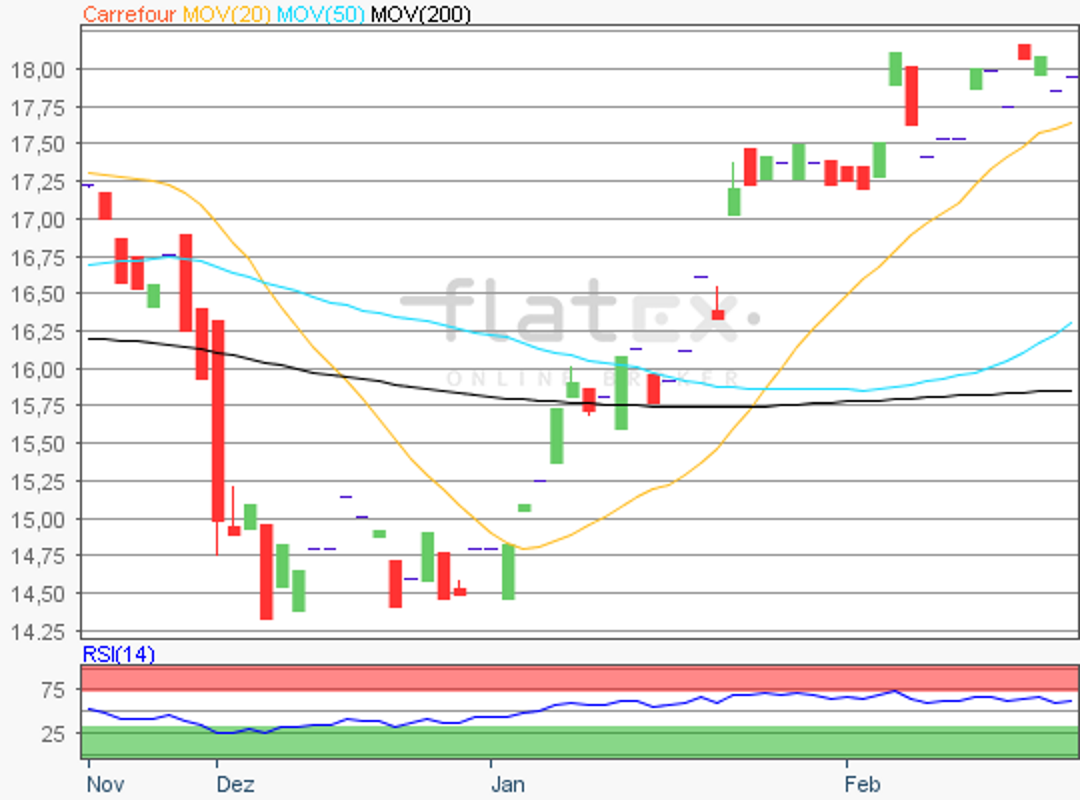 Die Aktie des französischen Einzelhandelskonzerns Carrefour notierte am 06. Februar 2019 auf einem letzten Zwischenhoch von 18,18 Euro.