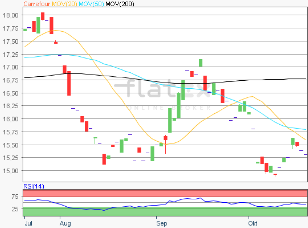 Die Aktie des französischen Einzelhandels-, Lebensmittelhandel- und CAC40-Konzerns Carrefour notierte am 13. Juli 2018 auf einem übergeordneten Tief von 12,95 Euro.