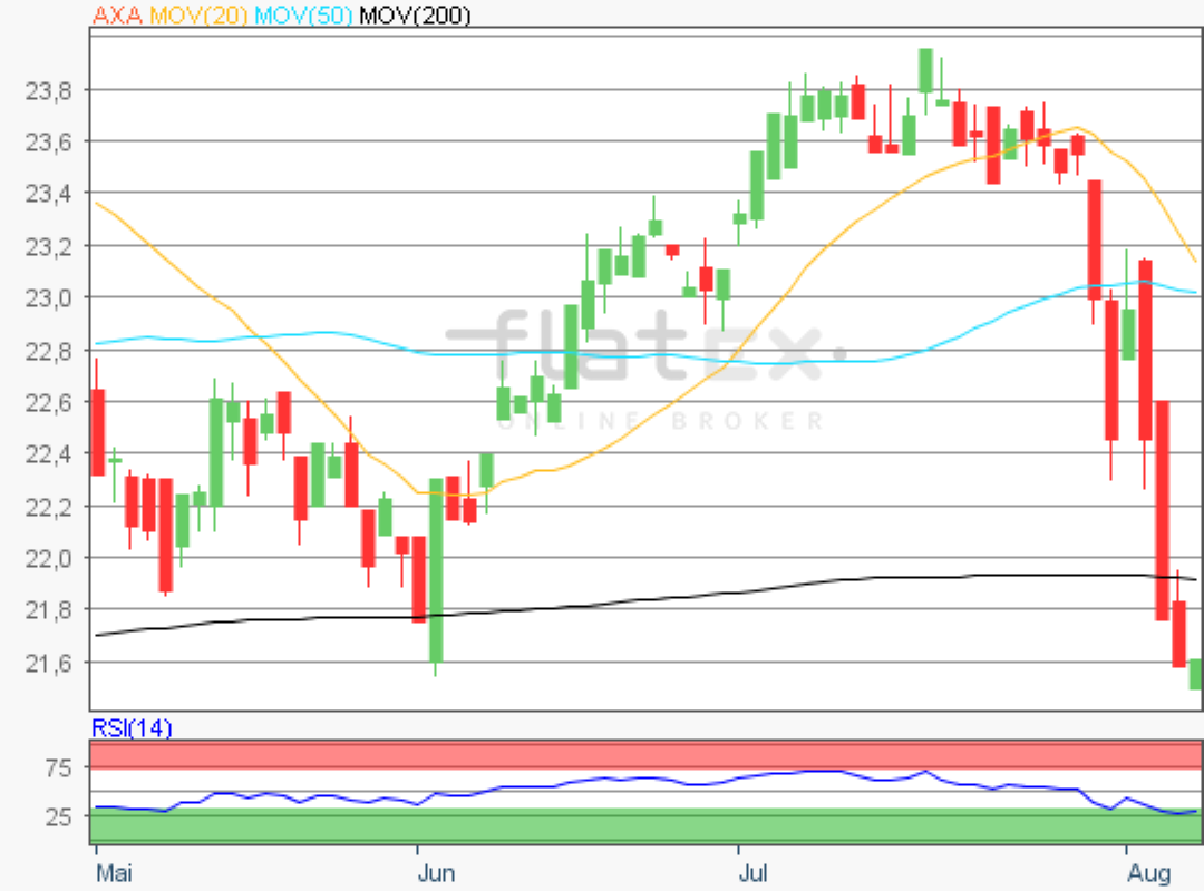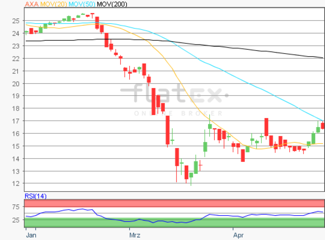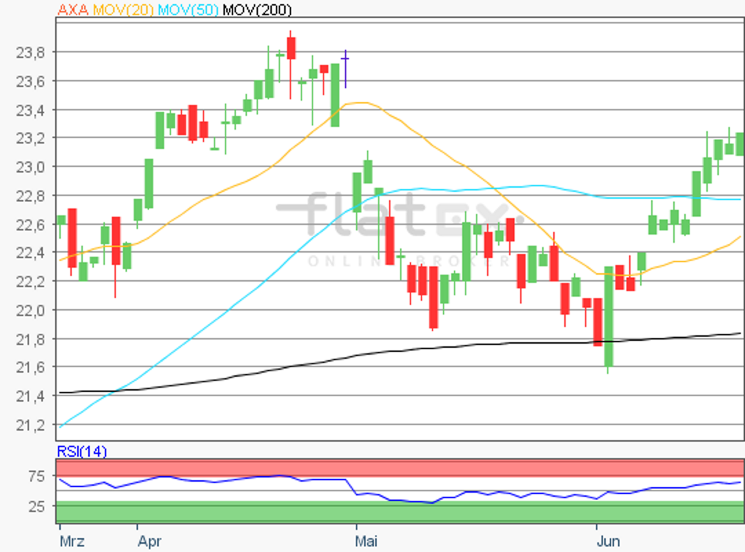 Die Aktie des französischen Versicherungskonzerns AXA notierte am 04. Juni 2019 auf einem Verlaufstief von 21,69 Euro.