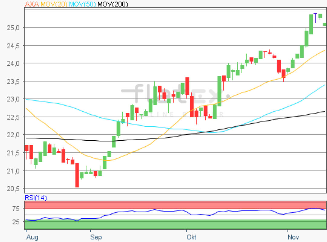 Die Aktie des EuroStoxx50-Konzerns AXA notierte am 23. Januar 2018 auf einem Jahreshoch von 27,69 Euro.