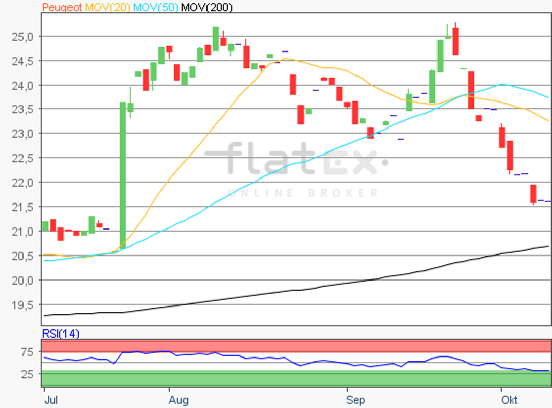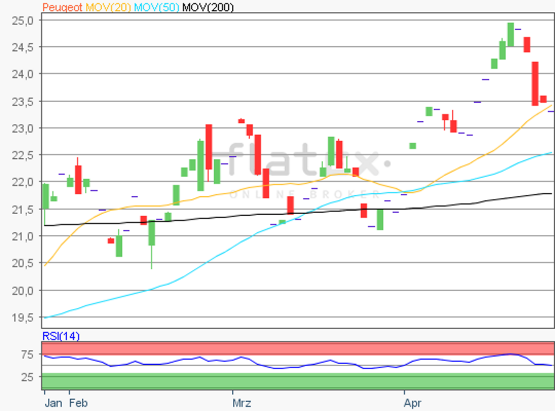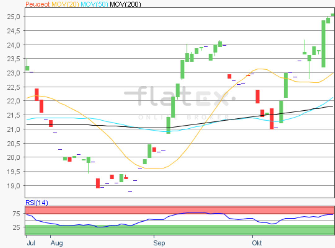 Die Aktie des französischen Automobilkonzerns Peugeot bildete am 21. September 2018 ein Hoch bei 25,40 Euro aus.