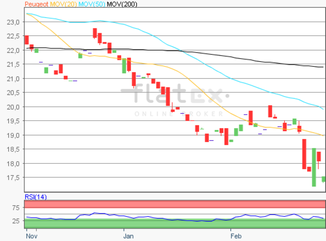 Die Aktie des französischen Automobilkonzerns Peugeot (PSA) notierte am 06. Februar 2018 auf einem Jahrestief von 17,30 Euro.