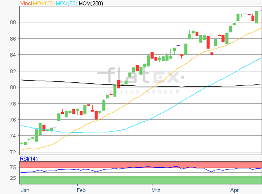 Die Aktie des EuroStoxx50-Konzerns Vinci notierte am 09. Januar 2018 bei 88,80 Euro auf einem Jahreshoch.