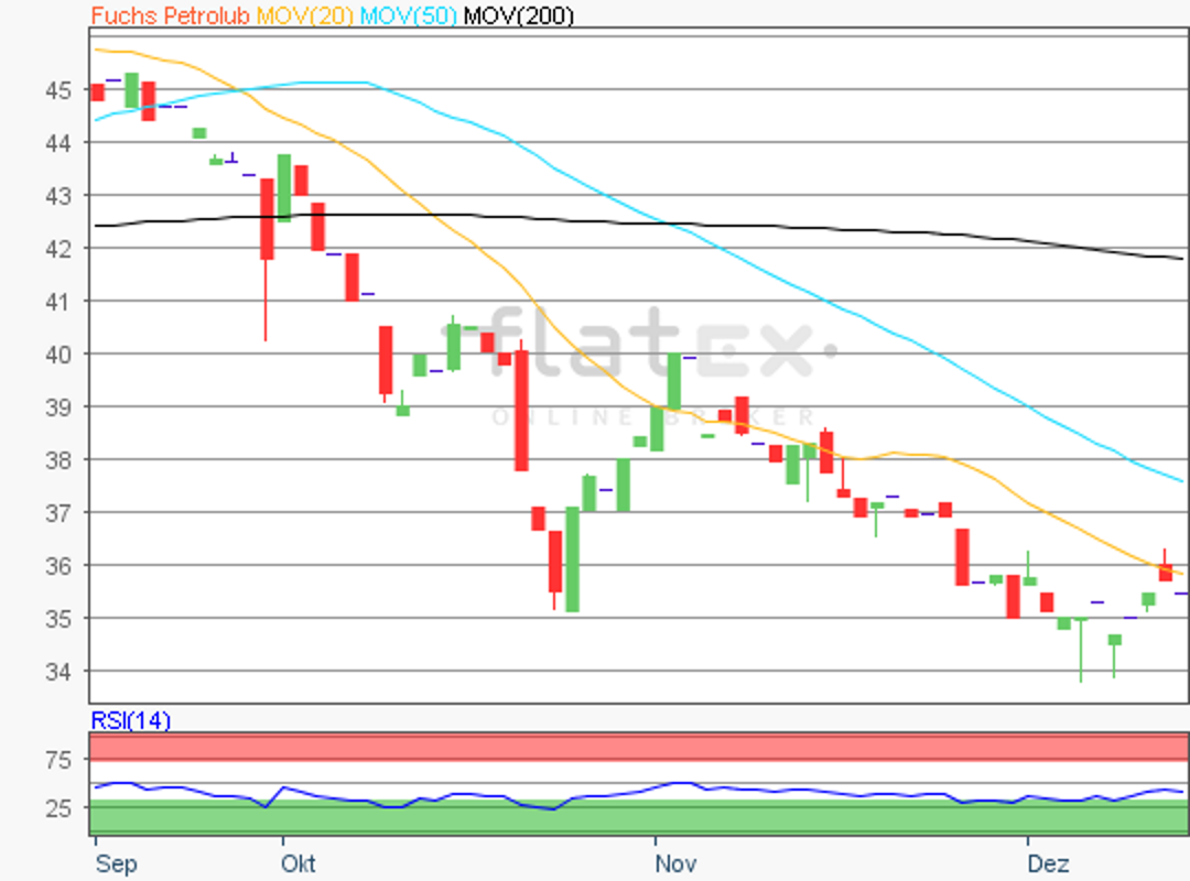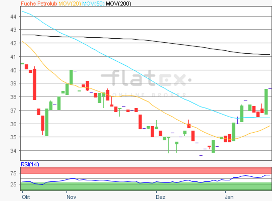 Die Vorzugsaktie des MDAX-Konzerns Fuchs Petrolub notierte am 06. Februar 2018 mit 40,00 Euro auf einem hier relevanten Verlaufstief.