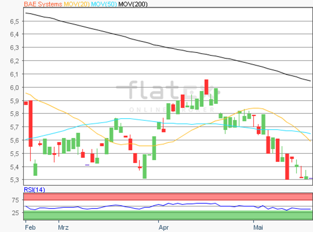 Vergleicht man den Aktienkurs des europäischen Rüstungskonzerns BAE Systems mit denen von US-Rüstungsunternehmen, wird sehr schnell deutlich, wie schwach sich BAE Systems in den letzten Wochen präsentiert hat.