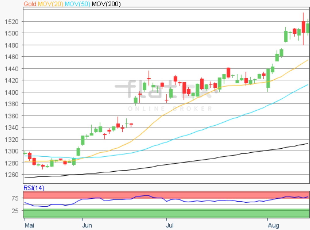 Der Preis für eine Feinunze Gold notierte in der abgelaufenen Börsenwoche so hoch wie seit dem Mai 2013 nicht mehr.