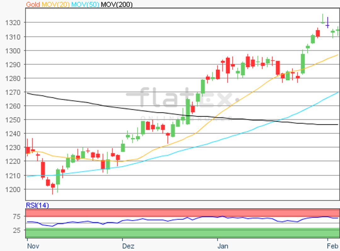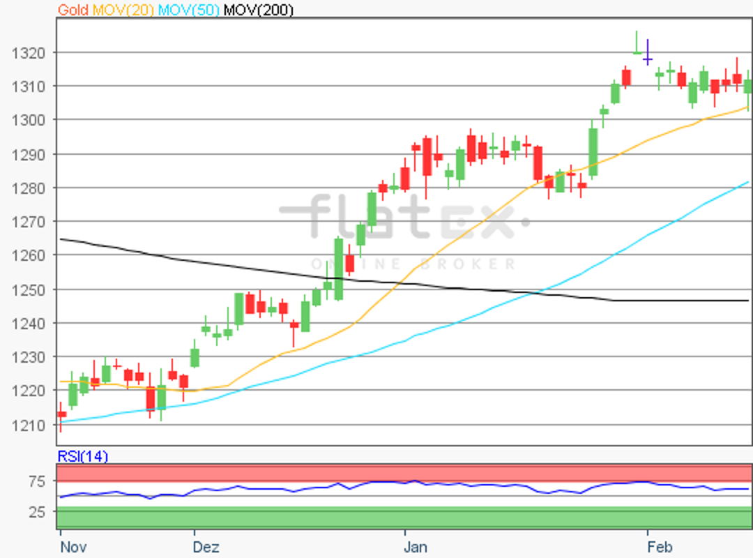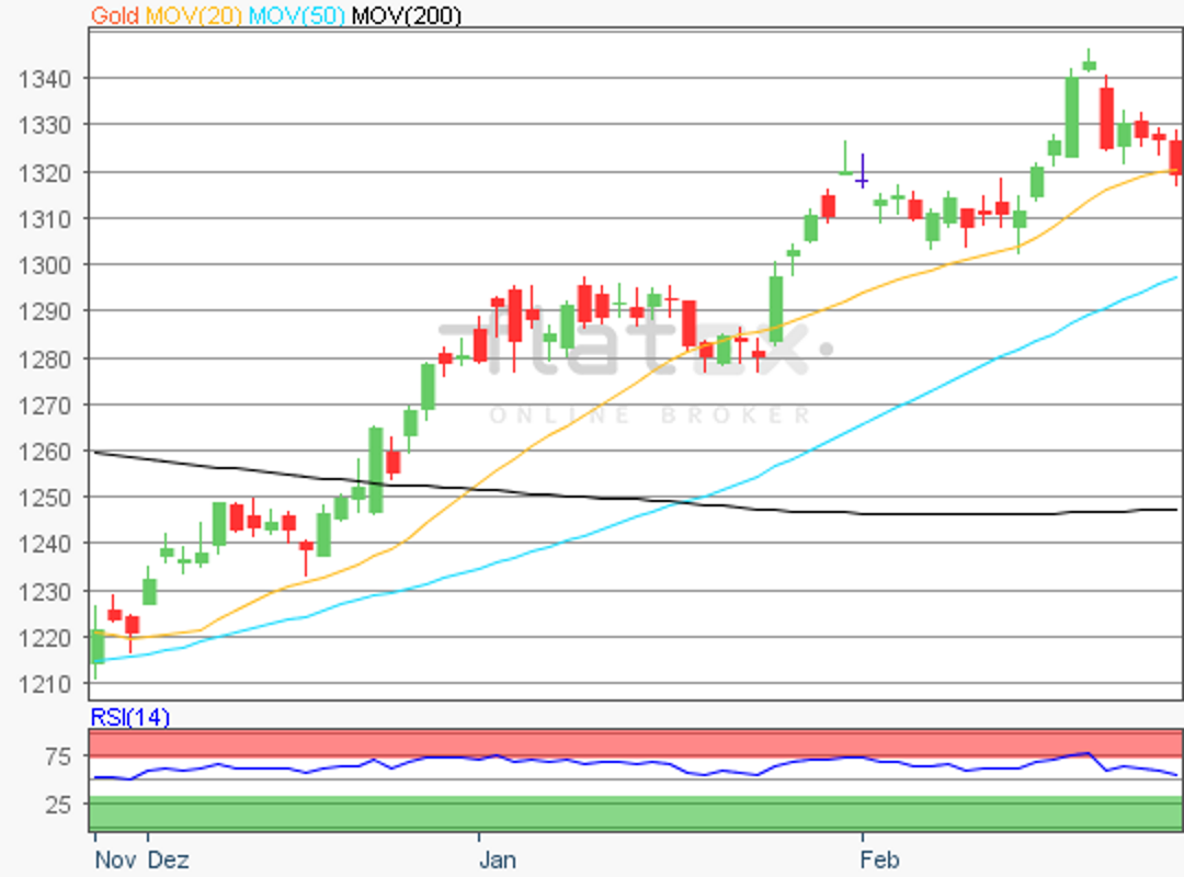 Der Preis für eine Feinunze Gold konnte sich oberhalb des letzten Verlaufshochs vom 31. Januar 2019 von 1.326,33 US-Dollar impulsiv absetzen.
