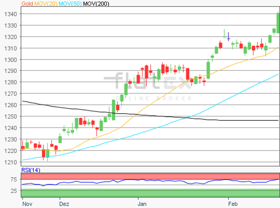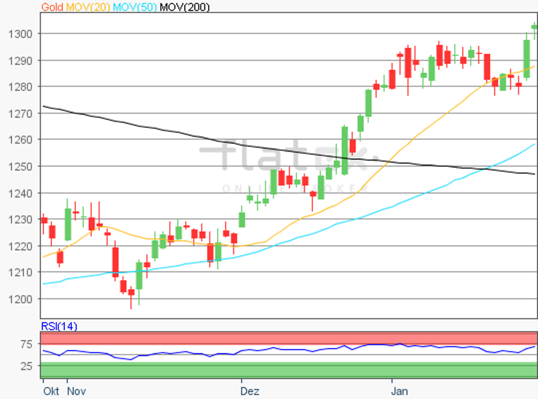 Der Preis für eine Feinunze Gold schraubt sich Tag für Tag in die Richtung des letzten übergeordneten Zwischenhochs von Anfang Januar 2018 bei rund 1.366 US-Dollar.