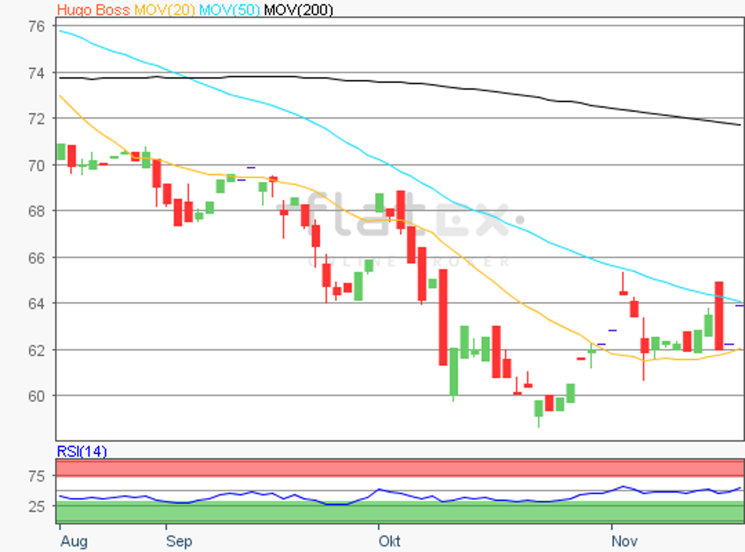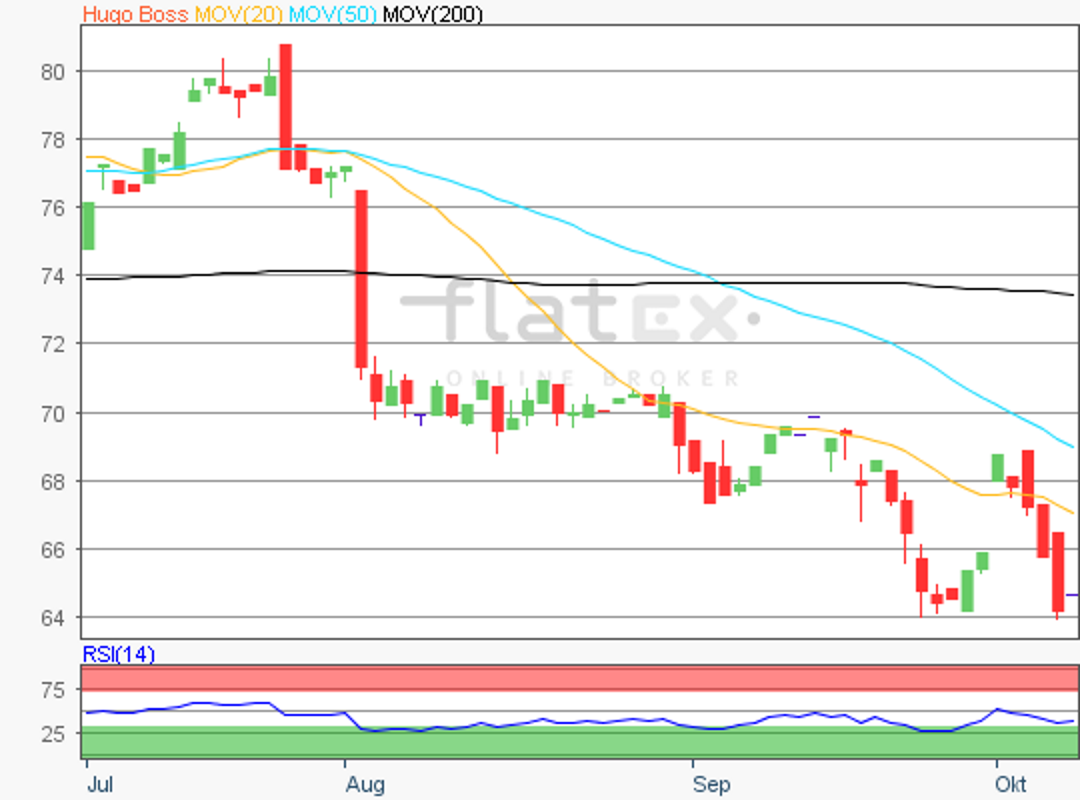 Die Aktie des MDAX-Konzerns Hugo Boss notierte am 24. September 2018 mit 63,70 Euro auf einem Zwischentief.