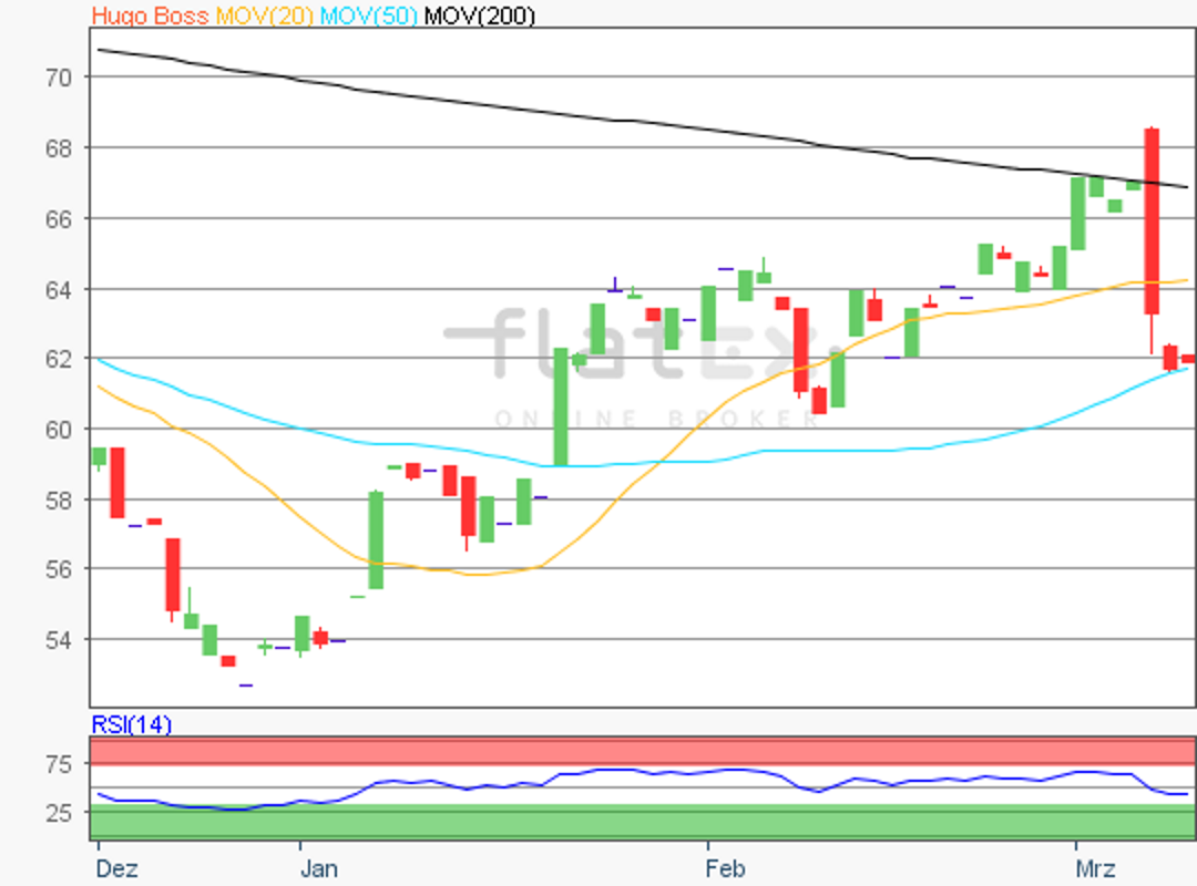 Die Aktie des MDAX-Konzerns Hugo Boss notierte am 04. März 2019 auf einem Jahreshoch von 67,30 Euro.