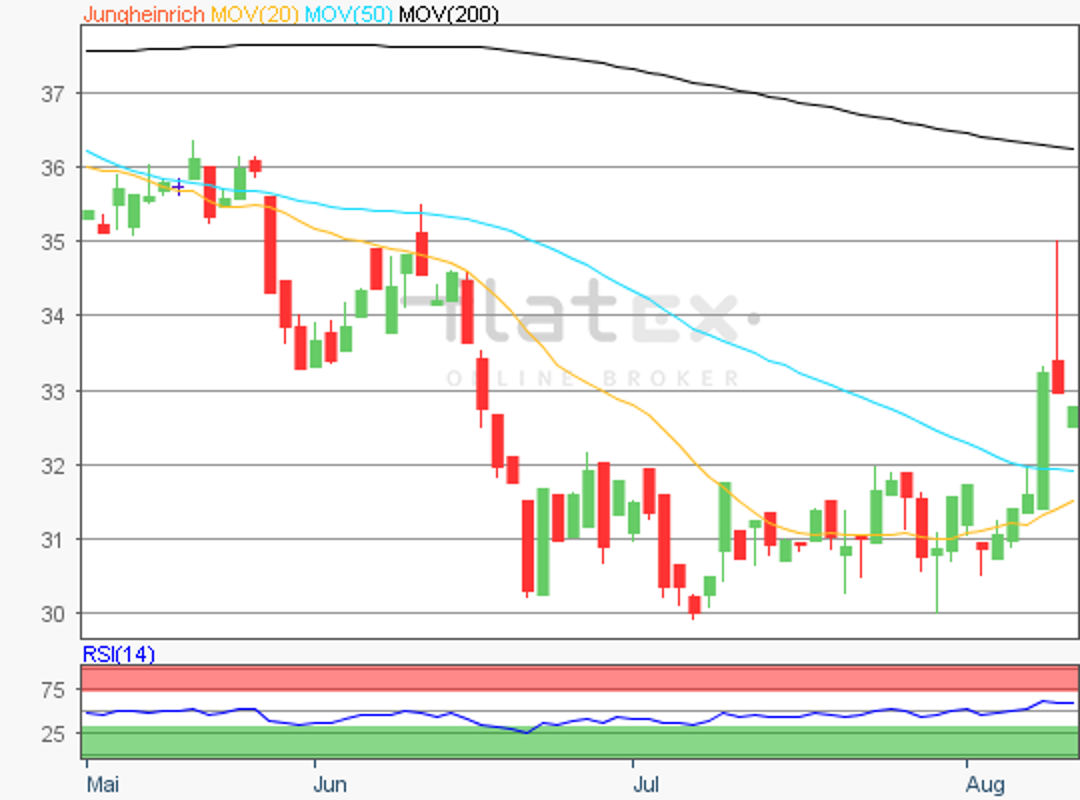 Die Vorzugsaktie des SDAX-Konzerns Jungheinrich notierte am 15. August 2019 auf einem letzten Verlaufstief von 17,50 Euro.