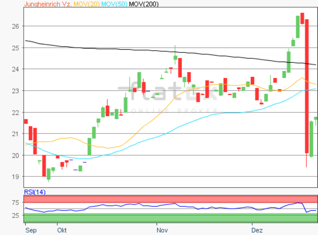 Die Vorzugsaktie des SDAX-Konzerns Jungheinrich notierte am 03. Juni 2019 bei 21,42 Euro auf einem Jahrestief.