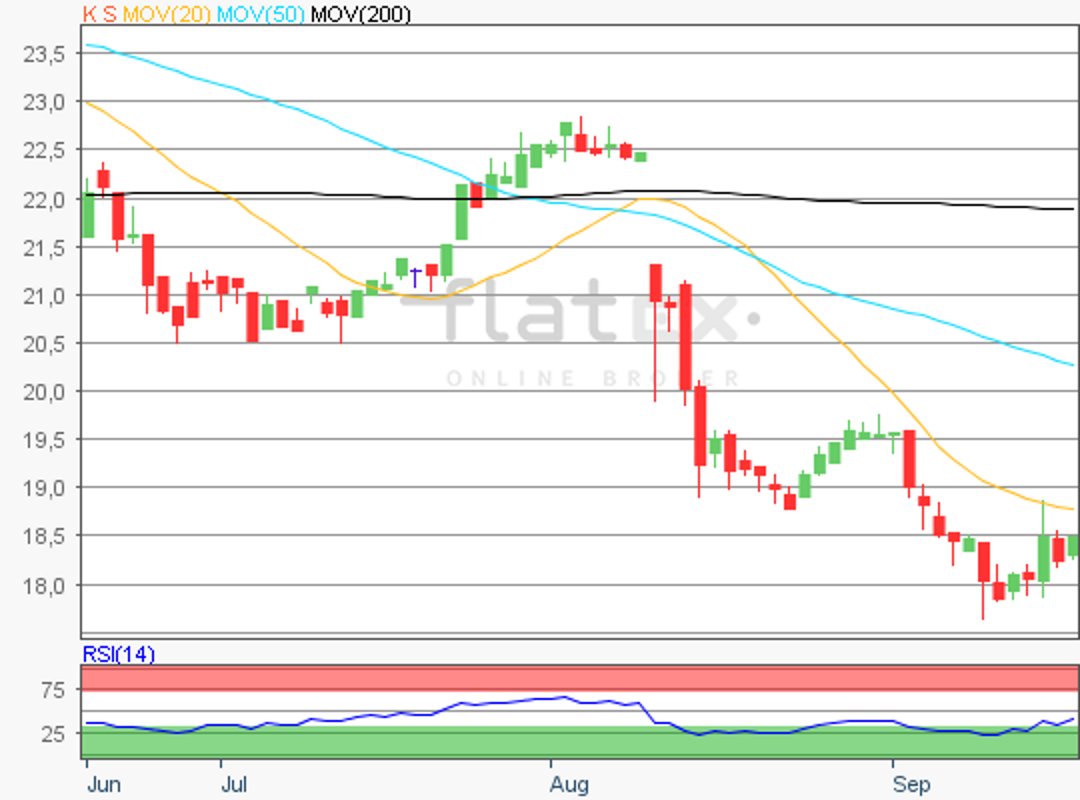 Aktie im Fokus – K + S Gallerie Aktie im Fokus – K + S flatex AG (News) Aktie im Fokus – K + S Die Aktie des MDAX-Konzerns K+S notierte am 27. Juni 2018 auf einem Verlaufstief von 20,46 Euro. flatex select2019-03-04T22:11:02+01:0019/09/18|