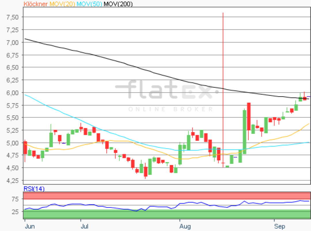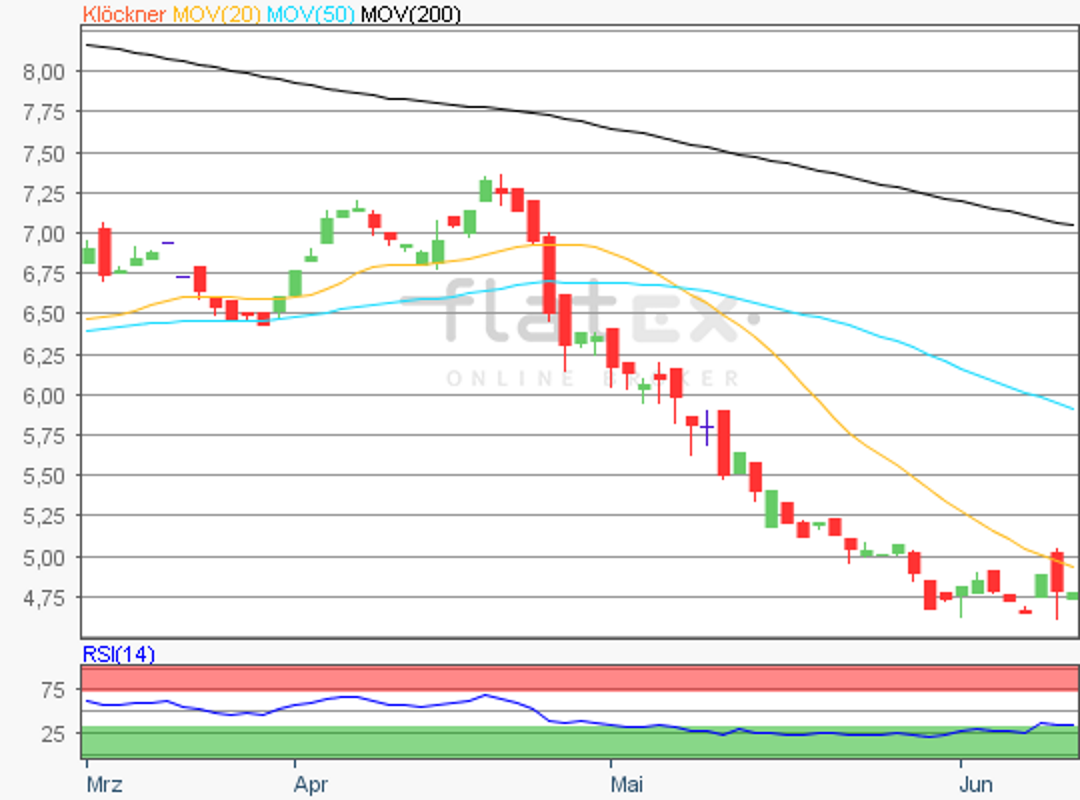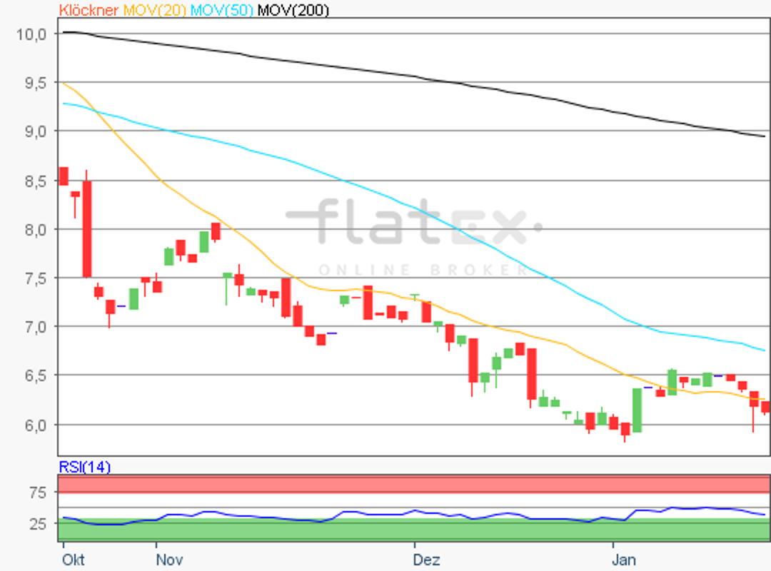 Die Aktie des SDAX-Konzerns Klöckner & Co notierte am 03. Januar 2019 auf einem Verlaufstief von 5,82 Euro.