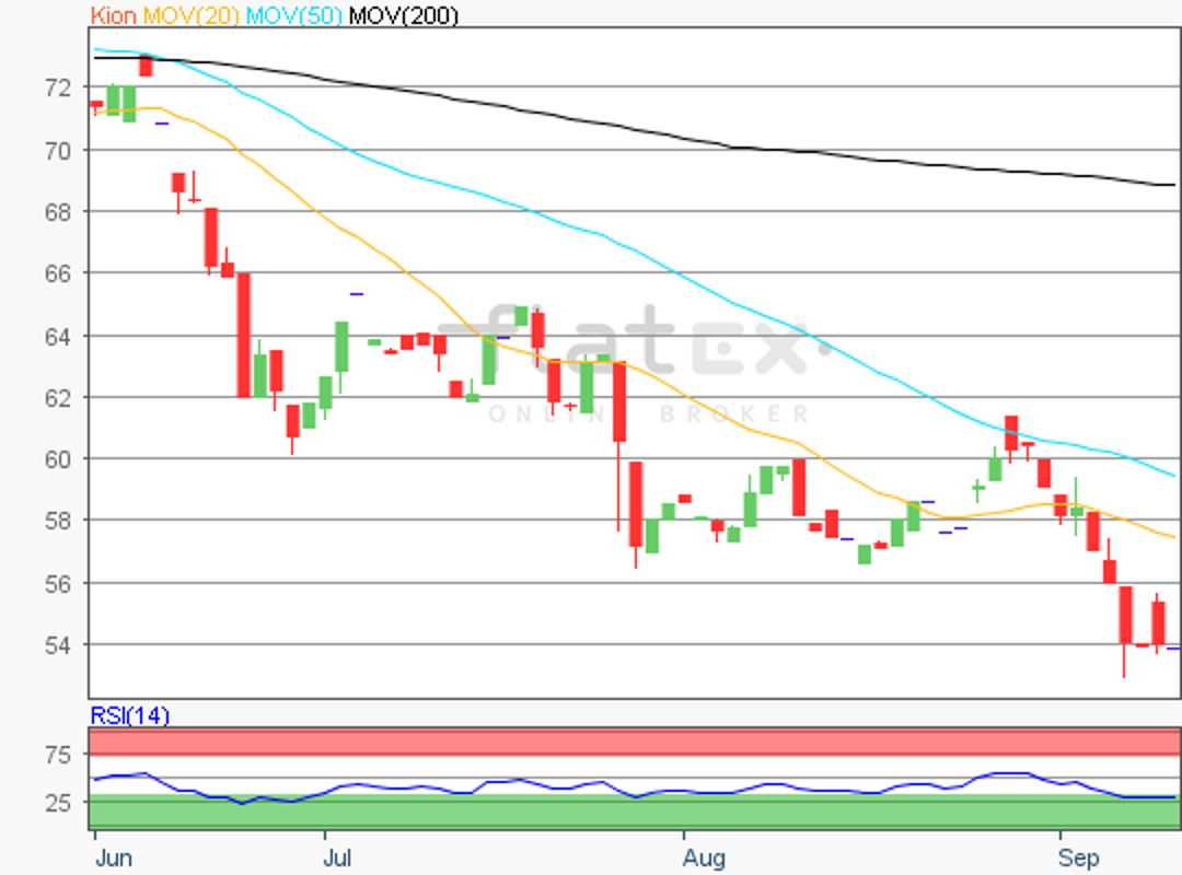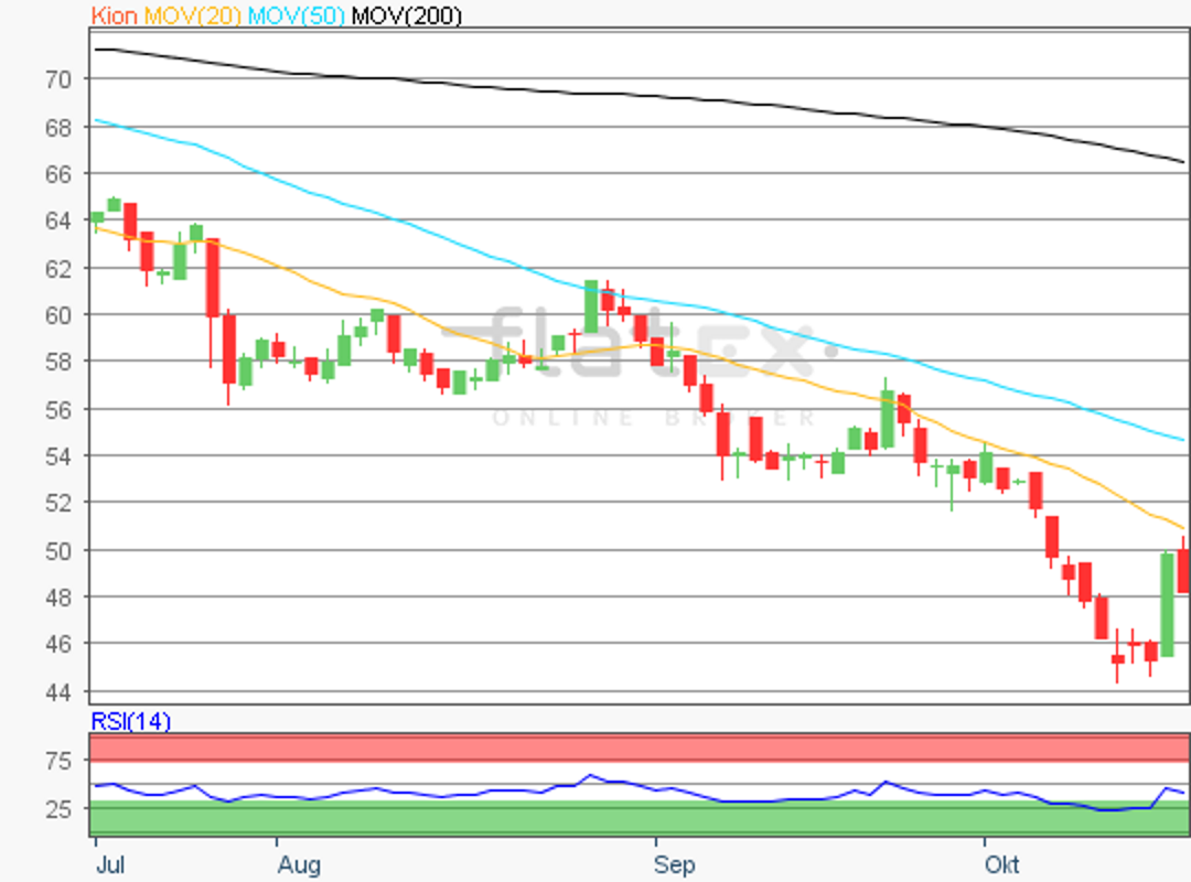 Die Aktie des MDAX-Konzerns Kion Group notierte am 13. September 2018 mit 52,68 Euro auf einem Verlaufstief.