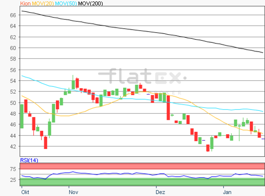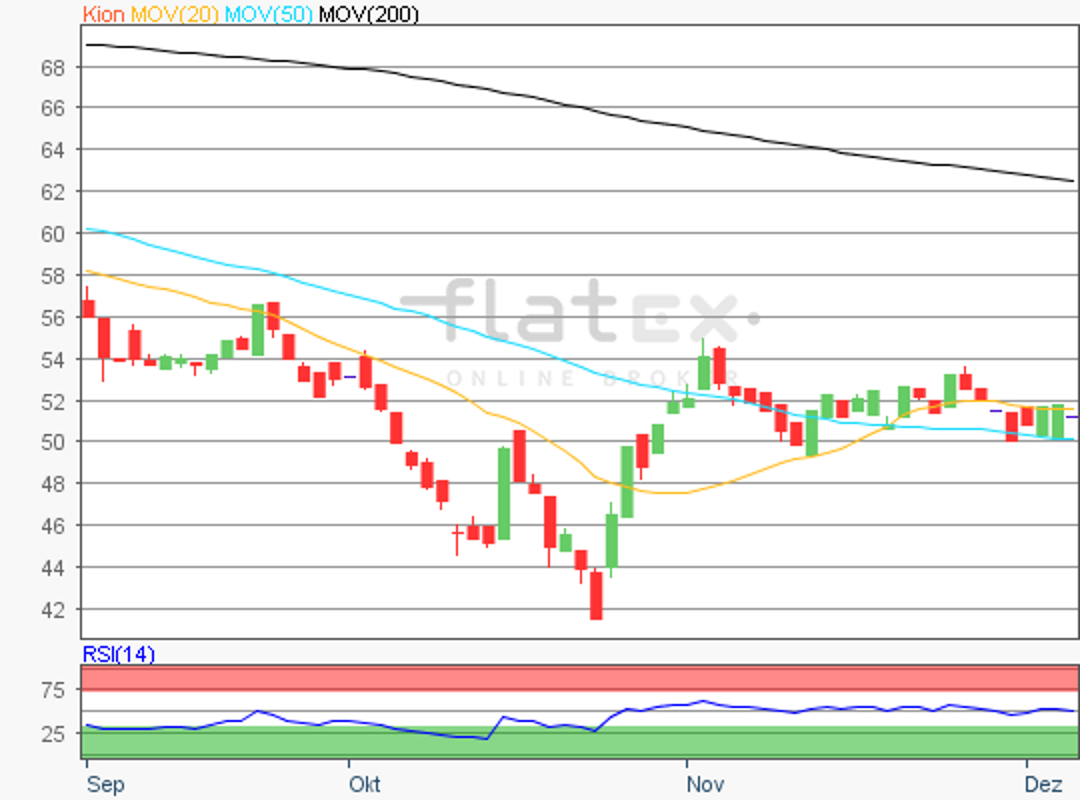 Die Aktie des SDAX-Konzerns Kion Group notierte am 20. Dezember 2018 auf einem Zwischentief von 41,02 Euro.