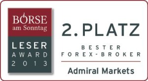 Der internationale Forex- und CFD-Broker Admiral Markets konnte sich im Test des renommierten Magazins „Börse am Sonntag“ gegen seine Mitbewerber durchsetzen und sich einen Platz auf dem Treppchen bei der Wahl zum „Besten Forex-Broker 2013“ sichern.