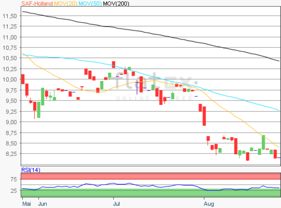 Die Aktie des SDAX-Konzerns SAF-Holland notierte am 31. Mai 2019 auf einem letzten Verlaufstief von 9,04 Euro.