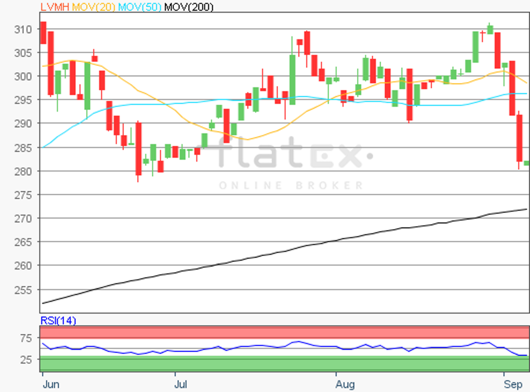 Die Aktie des EuroStoxx50-Konzerns LVMH bildete am 21. Mai 2018 bei 313,70 Euro ein Hoch aus.