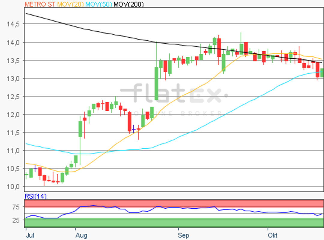 Die Aktie des MDAX-Konzerns Metro notierte am 10. Mai 2019 auf einem letzten hier relevanten Verlaufstief von 13,55 Euro.