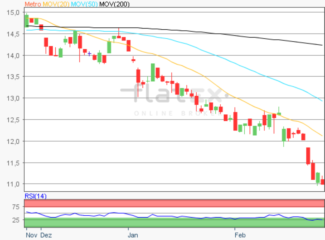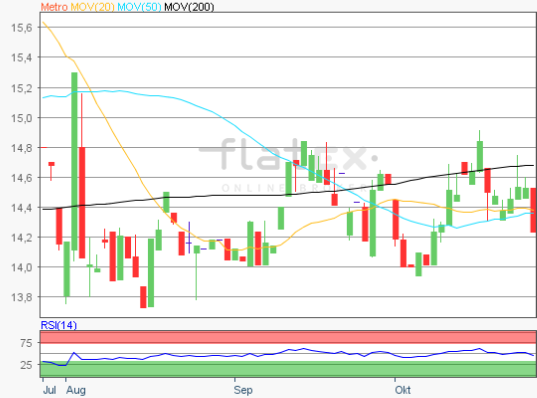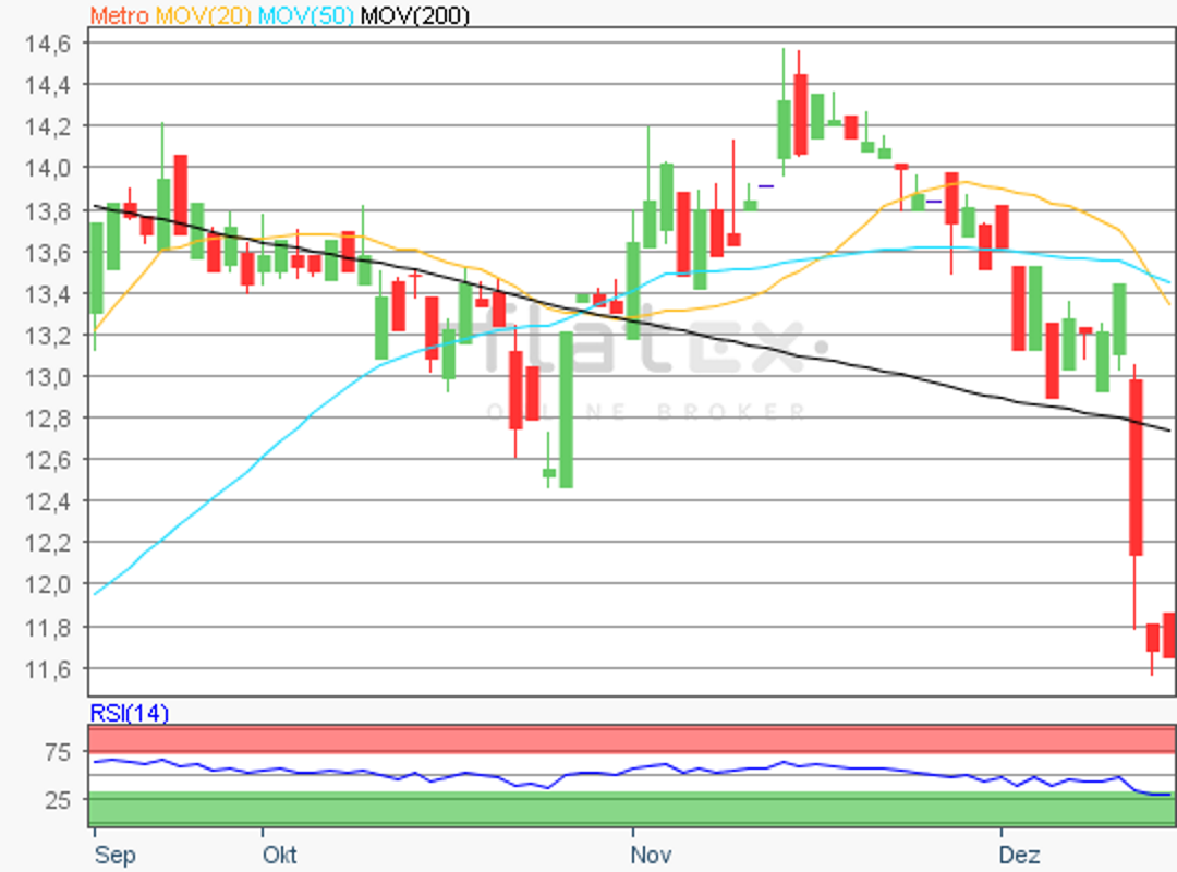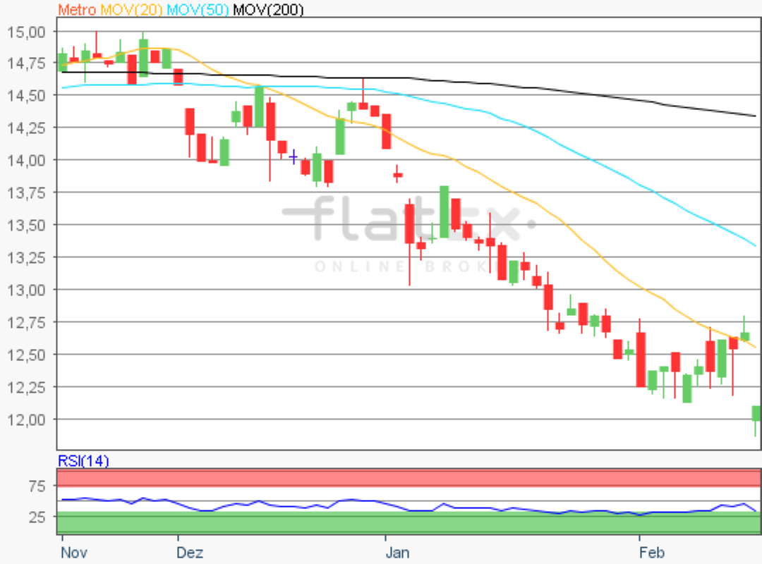 Die Aktie des MDAX-Konzerns Metro notierte am 23. Juli 2018 auf einem Verlaufstief von 10,02 Euro.