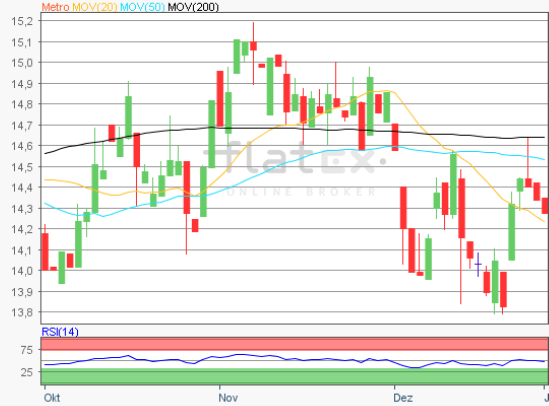 Die Aktie des MDAX-Konzerns Metro notierte am 24. Juni 2019 auf einem letzten Hoch von 16,35 Euro.