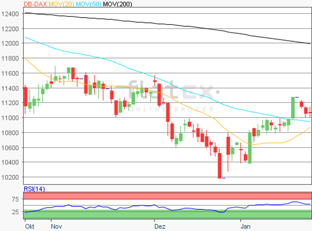 Der Deutsche Aktienindex beendete den Mittwoch mit einem leichten Kursverlust. Zum Xetra-Schluss notierte der DAX mit einem Minus von 0,17 Prozent bei 11.071,54 Punkten.