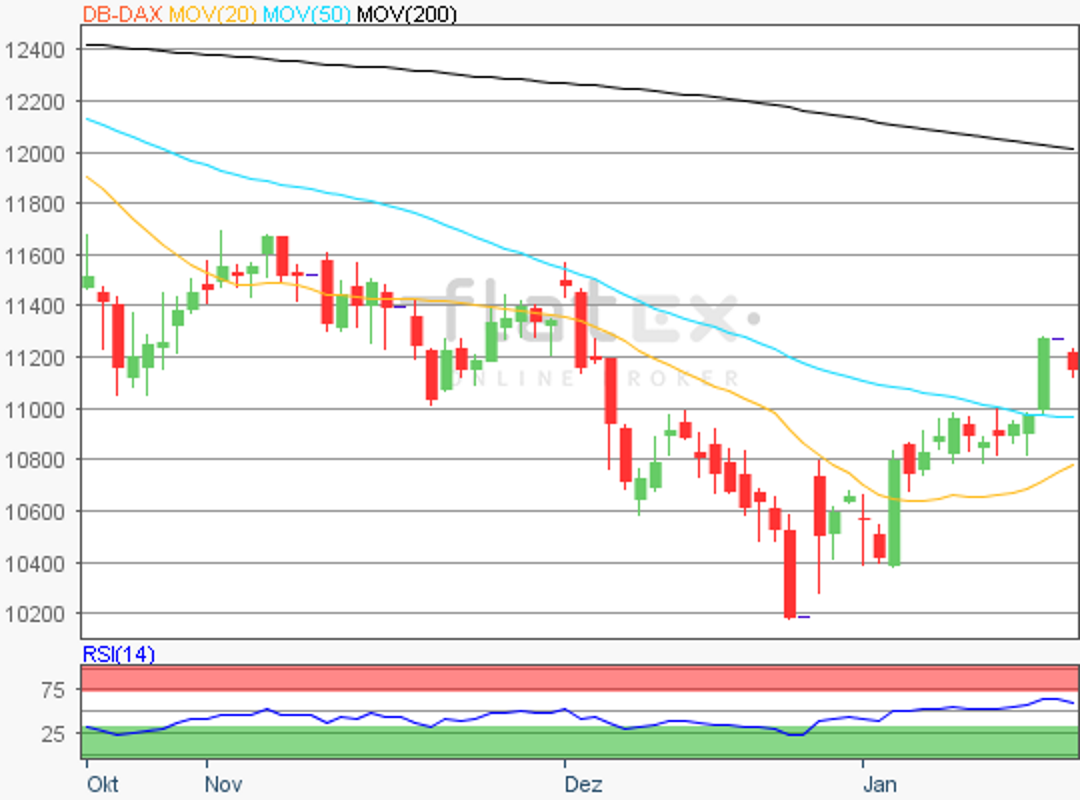 Die neue Börsenwoche begann für die meisten liquiden europäischen Aktienindizes mit Kursverlusten. Der Deutsche Aktienindex legte ebenso einen Fehlstart in die neue Handelswoche hin und schloss mit einem Minus von 0,62 Prozent bei 11.136,20 Punkten.