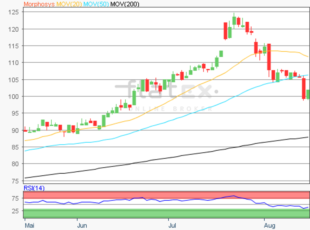 Die Aktie des TecDAX-Konzerns Morphosys notierte am 23. Juli 2018 auf einem Hoch von 124,90 Euro.
