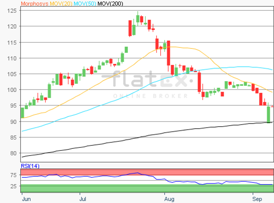 Die Aktie des TecDAX-Konzerns Morphosys notierte am 15. Februar 2018 auf einem Verlaufstief von 70,55 Euro.