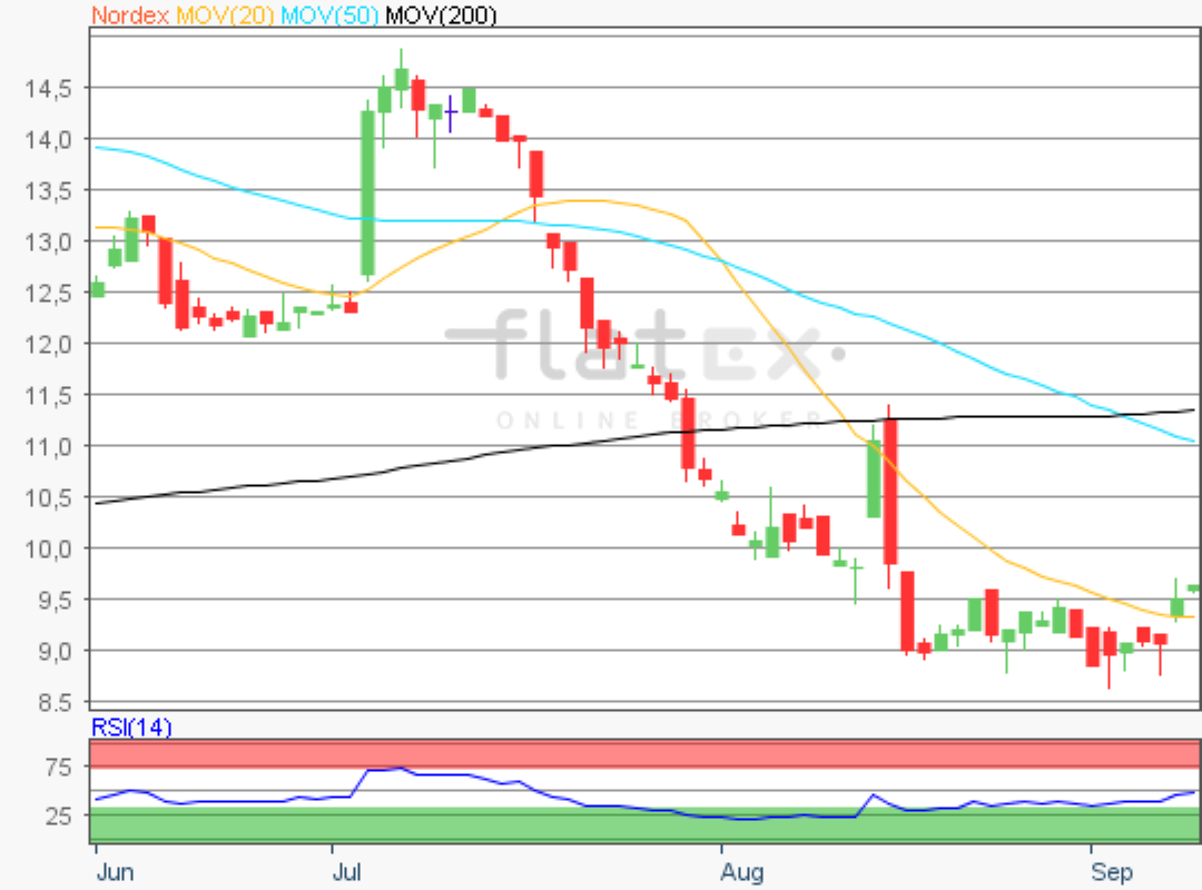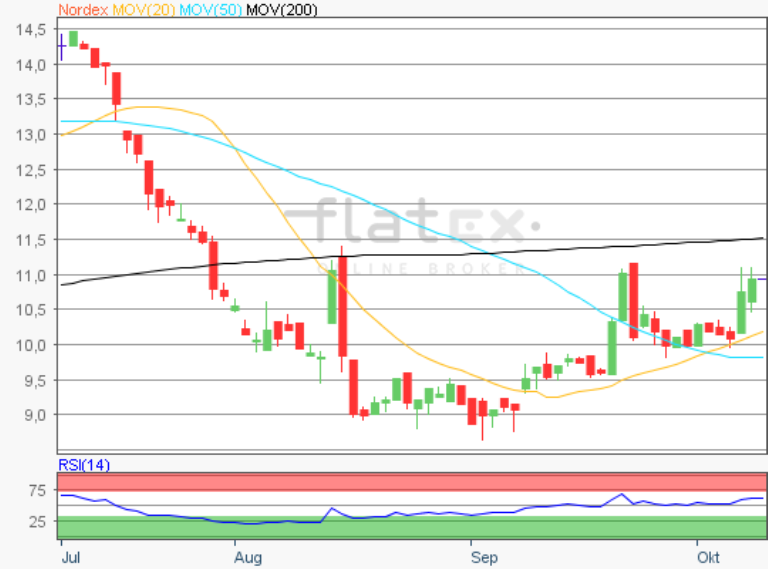 Die Aktie des TecDAX-Konzerns Nordex notierte am 15. November 2019 auf einem letzten Zwischenhoch von 13,10 Euro.