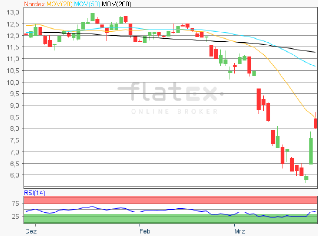 Die Aktie des SDAX-und TecDAX-Konzerns Nordex notierte am 03. April 2019 bei 15,75 Euro auf einem Jahreshoch.