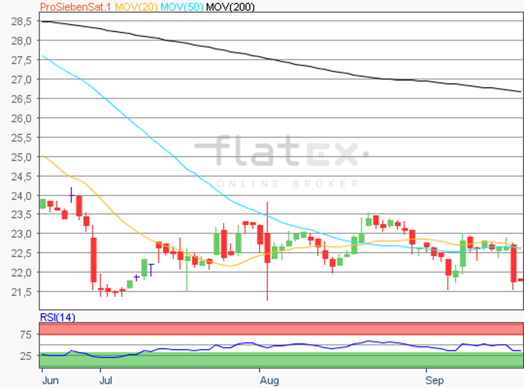 Die Aktie des MDAX-Konzerns ProSiebenSat.1 notierte am 02. August 2018 mit 21,12 Euro auf einem Verlaufstief.