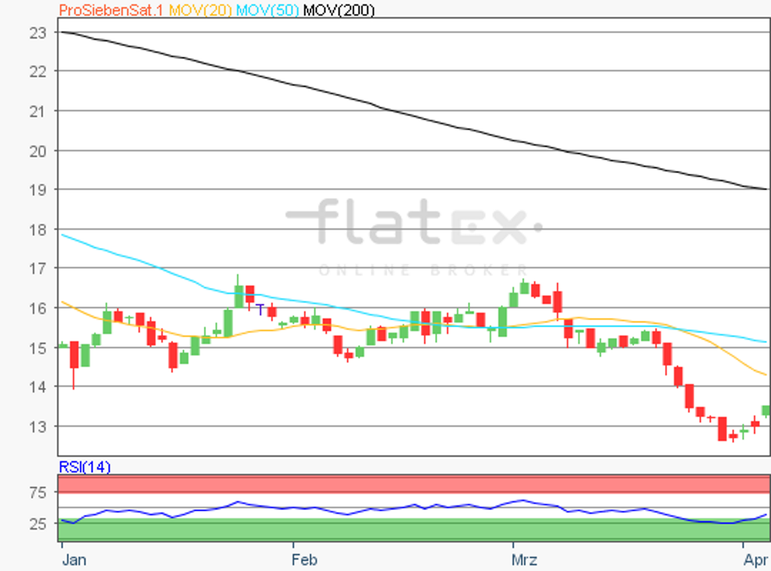 Die Aktie des MDAX-Konzerns ProSiebenSat.1notierte am 04. Januar 2019 bei 13,90 Euro auf einem Verlaufstief.