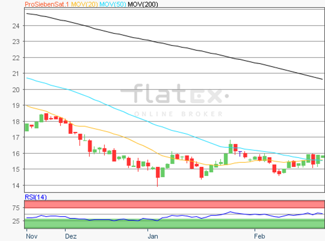 Die Aktie des MDAX-Konzerns ProSiebenSat.1 notierte am 04. Januar 2019 auf einem Verlaufstief von 13,90 Euro.