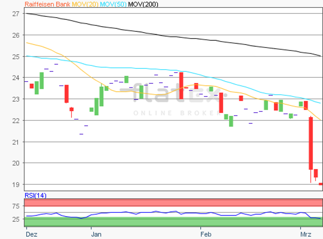Die Aktie des österreichischen Großkonzerns Raiffeisen International Bank notierte am 28. Januar 2015 auf einem übergeordneten Verlaufstief von 8,81 Euro.
