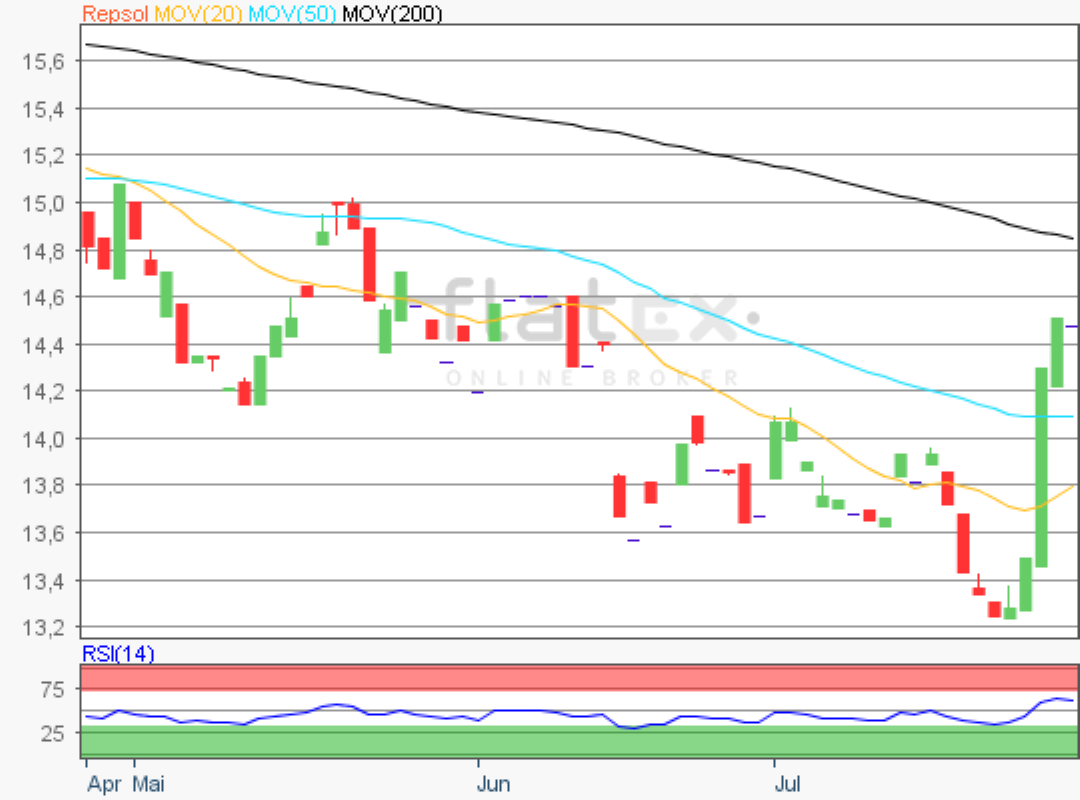 Die Aktie des spanischen Öl-Konzerns Repsol notierte am 19. März 2019 auf einem letzten Zwischenhoch von 15,66 Euro.