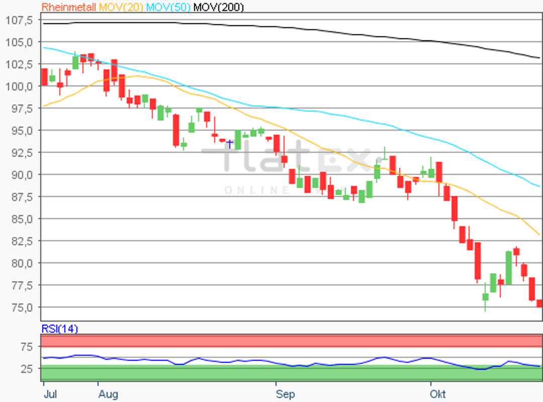 Die Aktie des MDAX-Konzerns Rheinmetall notierte am 26. Oktober 2018 bei 68,92 Euro auf einem Verlaufstief.