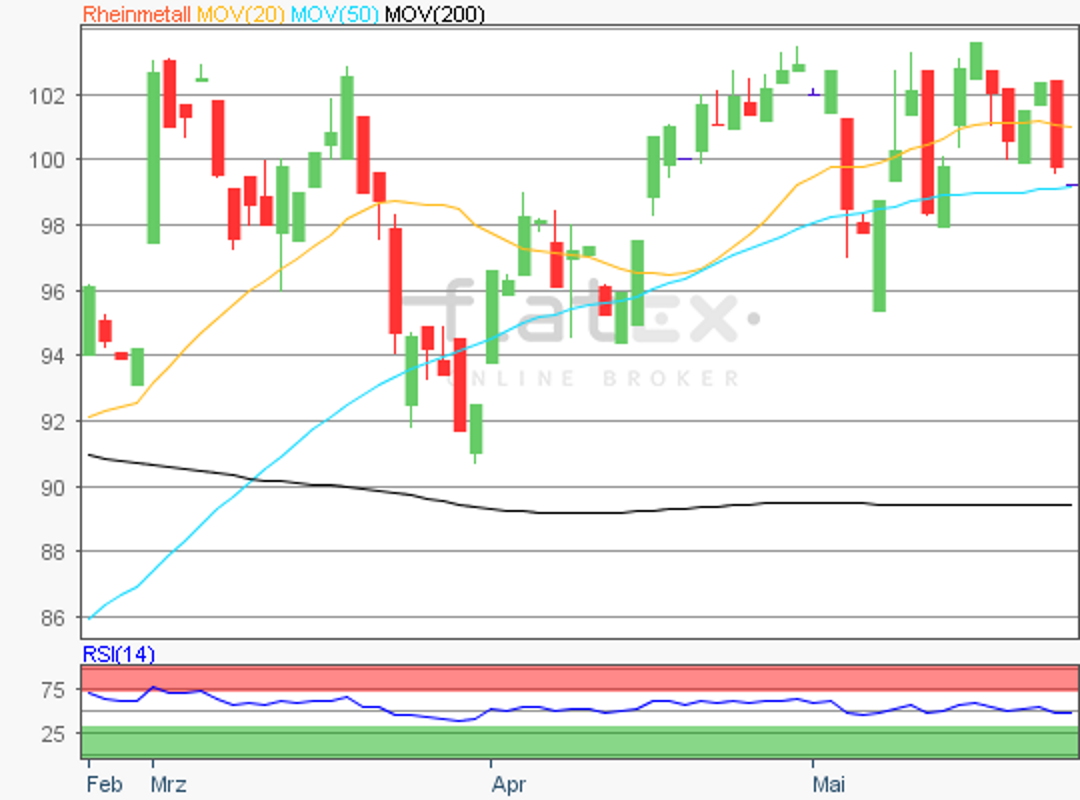 Markierte die Aktie von Rheinmetall am 09. Mai mit 104,30 Euro noch ein neues Jahreshoch 2019, so ging es gestern doch deutlich bergab mit dem Titel.