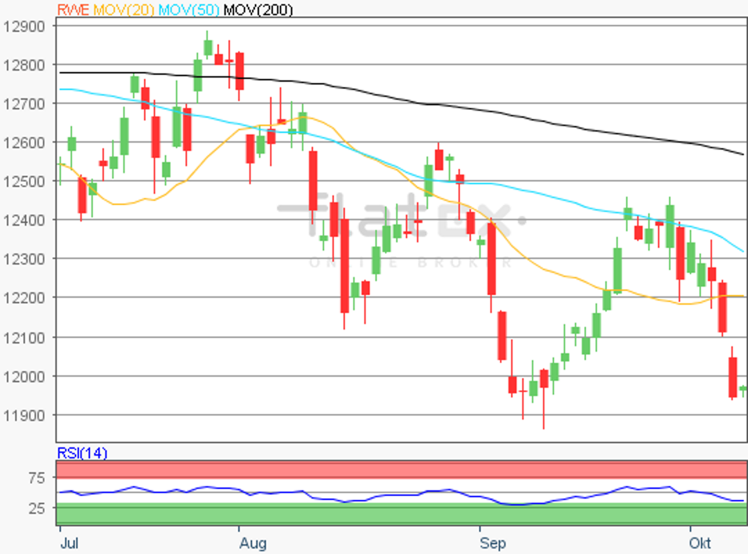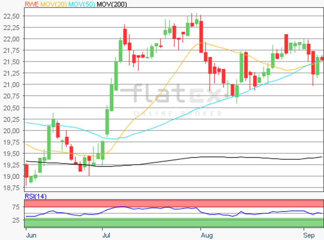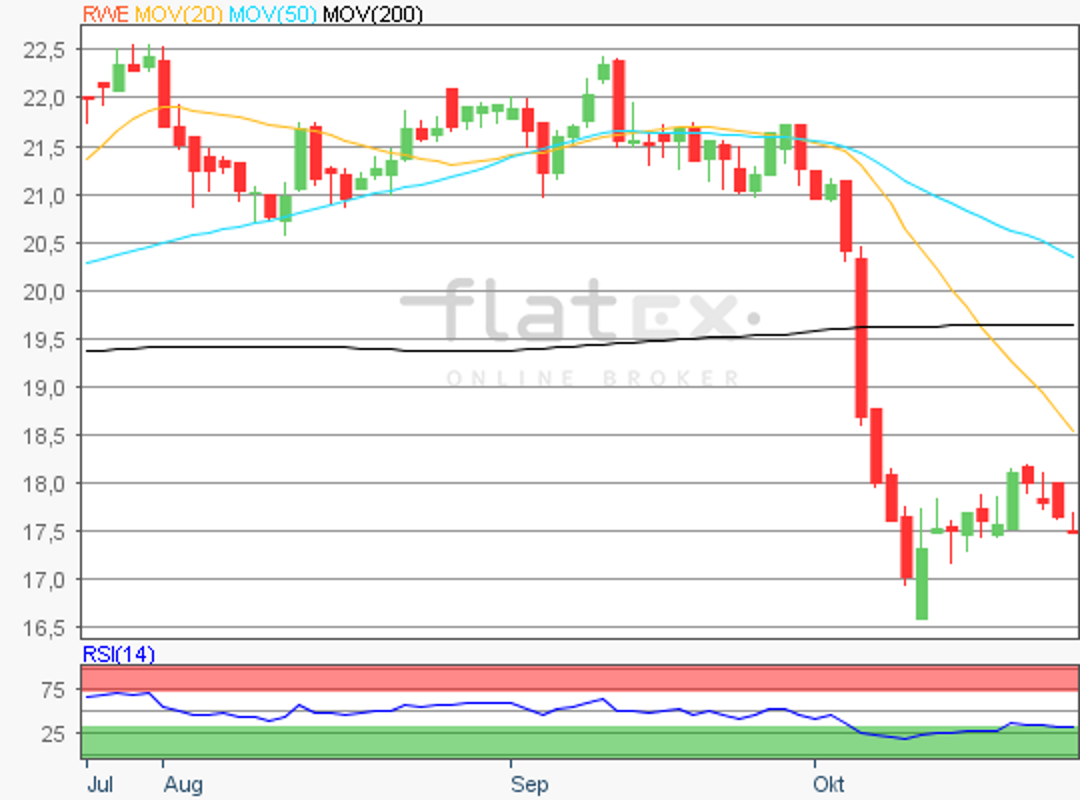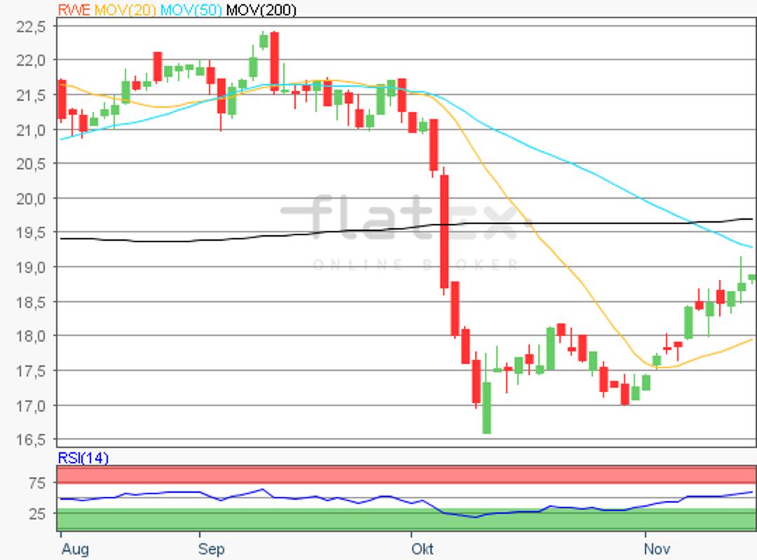 Die Aktie des DAX-Konzerns RWE bildete am 09. November 2017 bei 23,32 Euro ein Hoch aus.