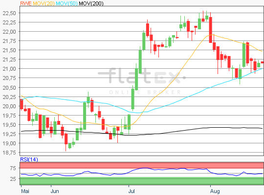Die Aktie des DAX-Konzerns RWE notierte am 31. Juli 2018 auf einem Hoch von 22,60 Euro.