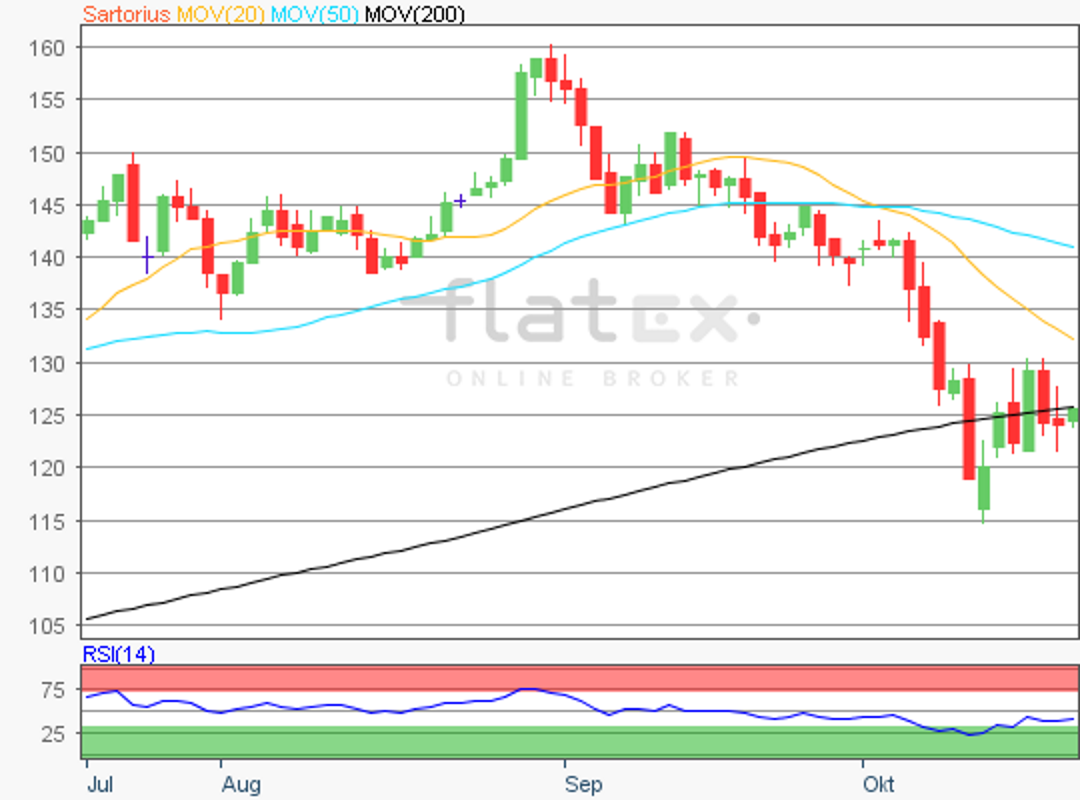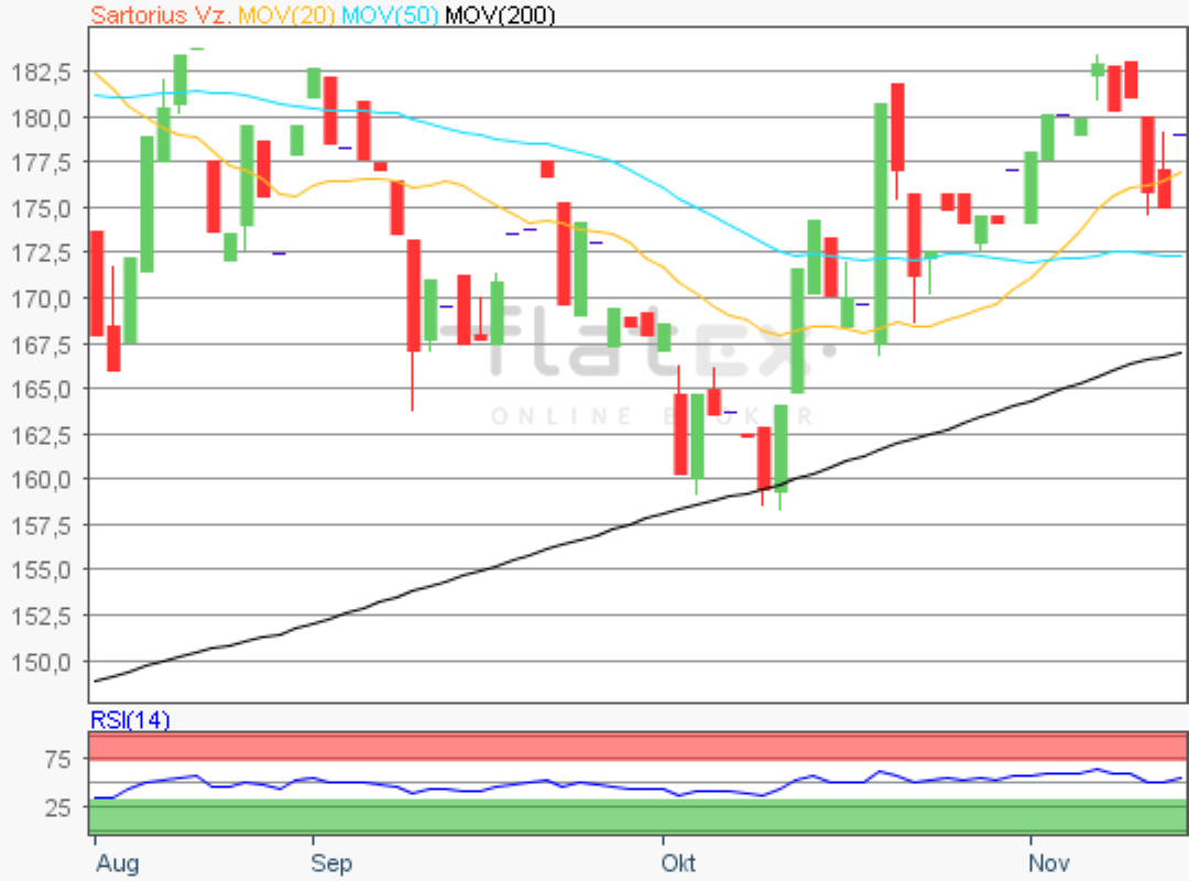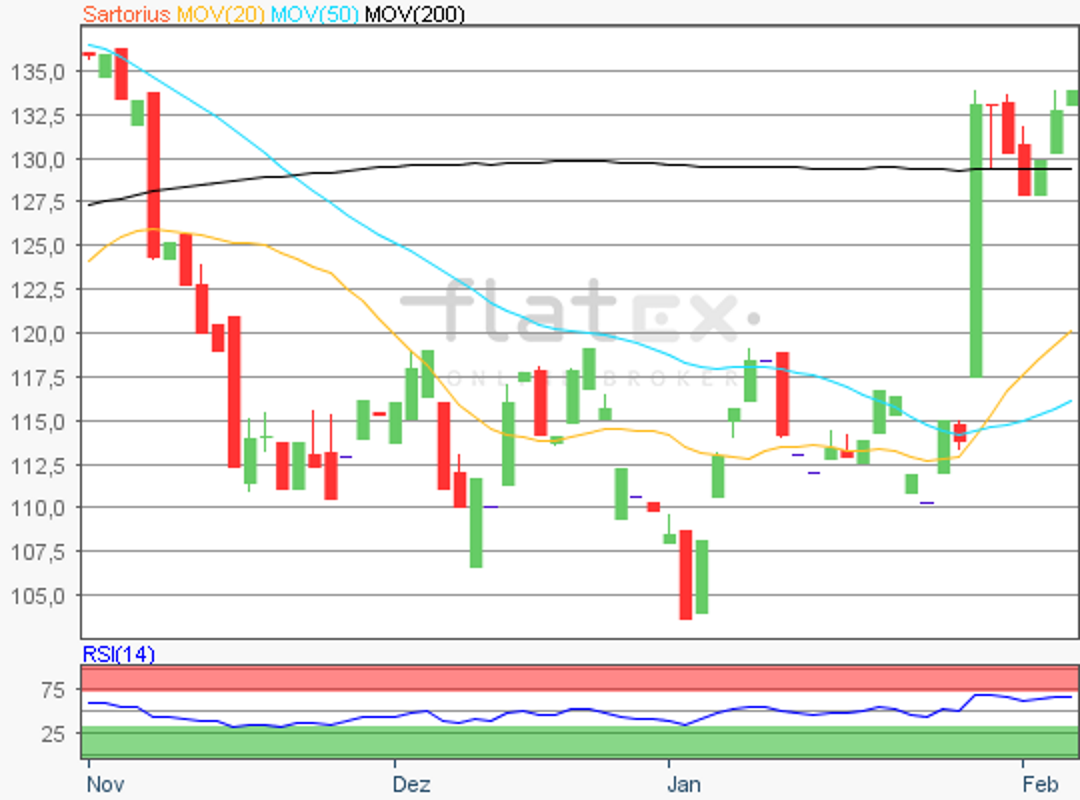 Fast unbeeindruckt von der schlechten Börsenstimmung am gestrigen Montag präsentierten sich die Vorzugsaktien von Sartorius.