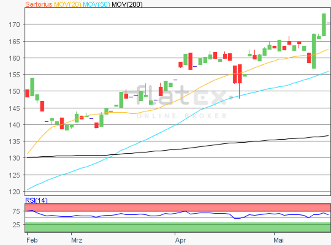 Die Vorzugsaktie des MDAX- und TecDAX-Konzerns Sartorius notierte am 16. März 2020 auf einem Verlaufstief von 164,00 Euro.