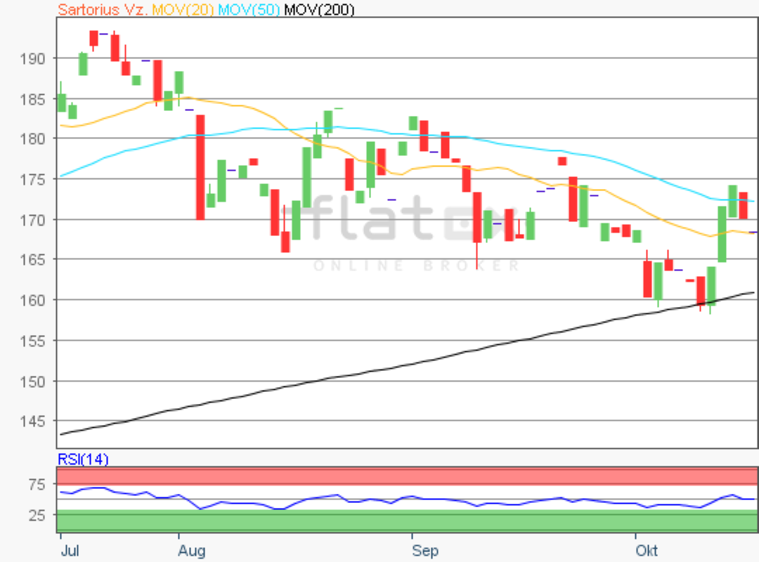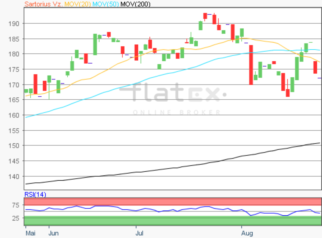Die Vorzugsaktie des TecDAX-Konzerns Sartorius notierte am 15. August 2019 auf einem letzten Verlaufstief von 165,80 Euro.