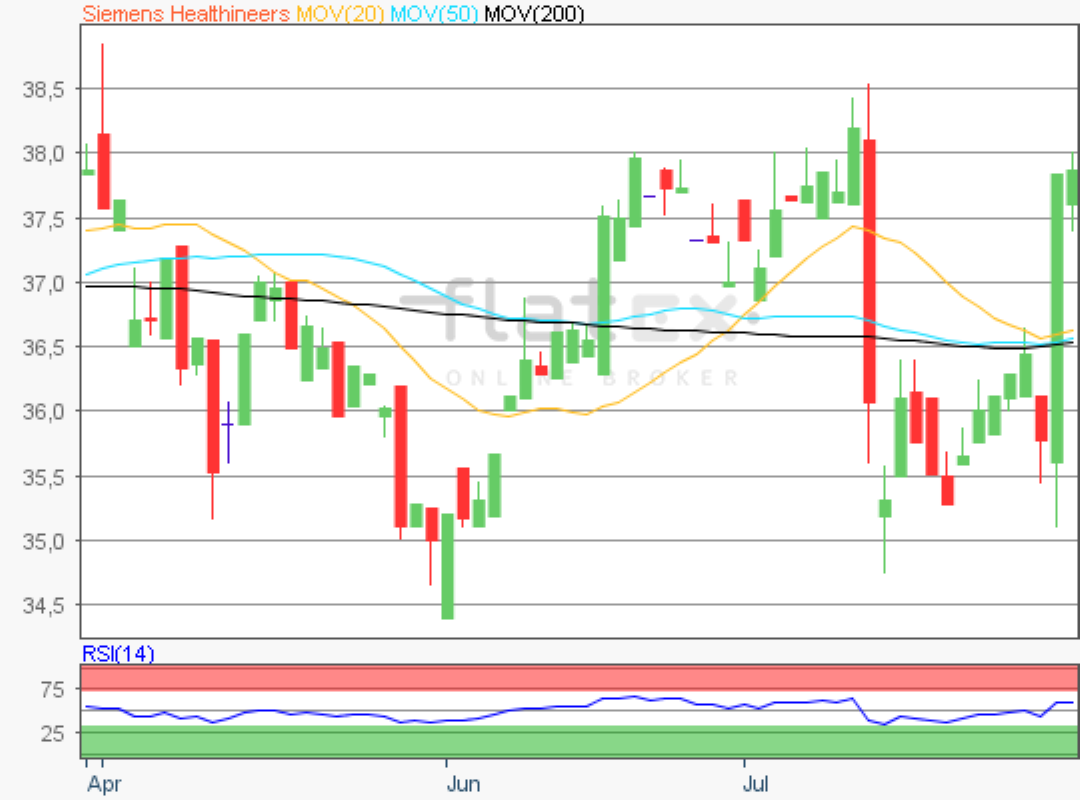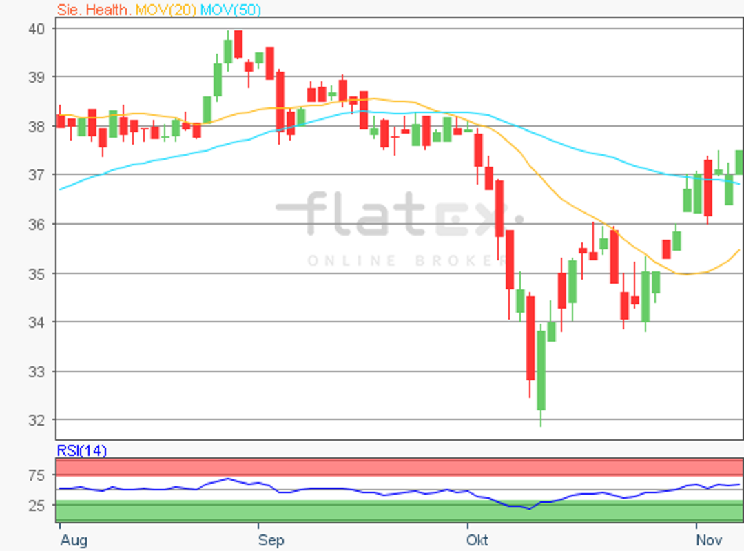 Die Aktie des MDAX-Konzerns Siemens Healthineers bildete am 29. August 2018 ein Hoch von 39,95 Euro aus.