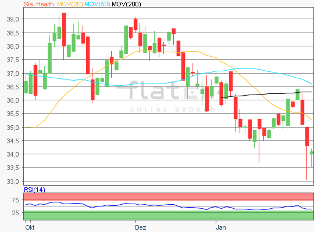 Die Aktie des MDAX-Konzerns Siemens Healthineers notierte am 29. Januar 2019 auf einem Jahrestief von 33,04 Euro.