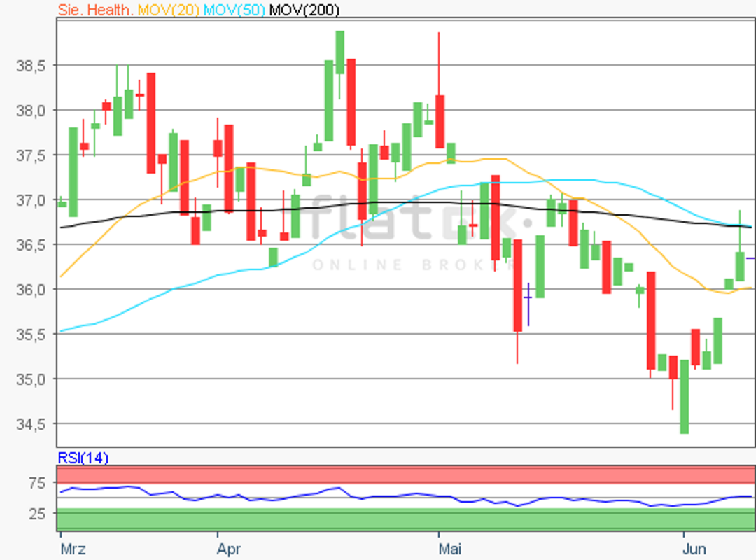 Die Aktie des MDAX- und Tec-Konzerns Siemens Healthineers bildete am 27. Juni 2018 bei 33,33 Euro ein Zwischentief aus.