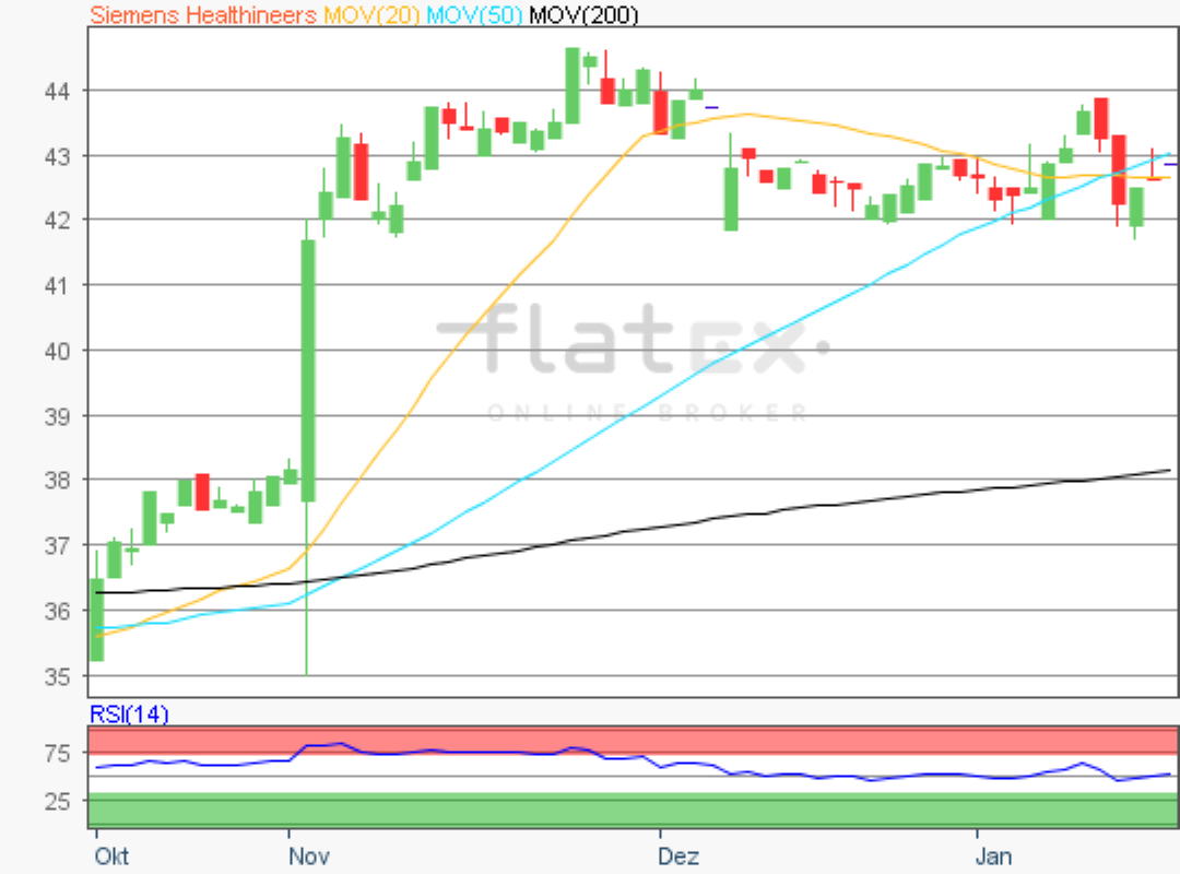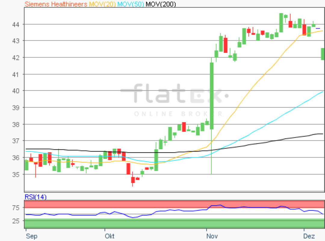 Die Aktie des MDAX-Konzerns Siemens Healthineers notierte am 26. November 2019 auf einem letzten Zwischenhoch von 44,80 Euro.