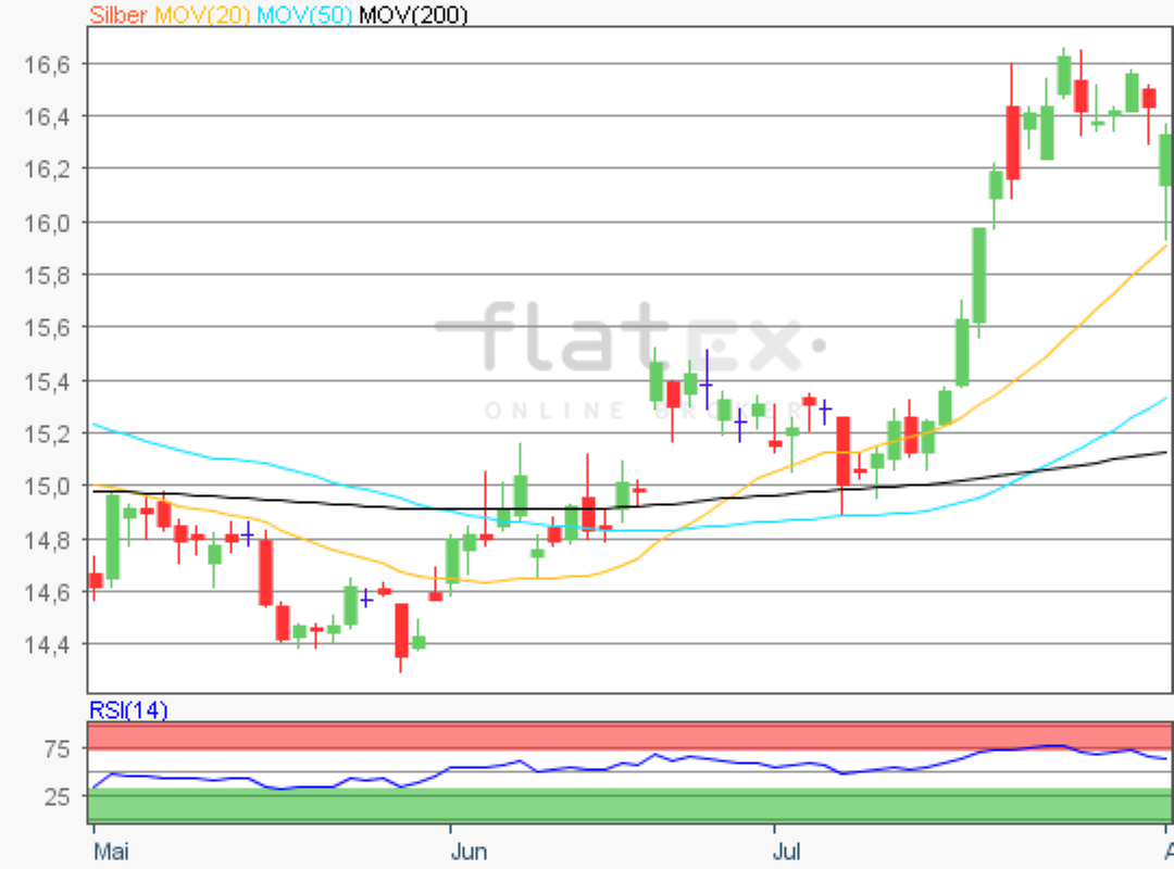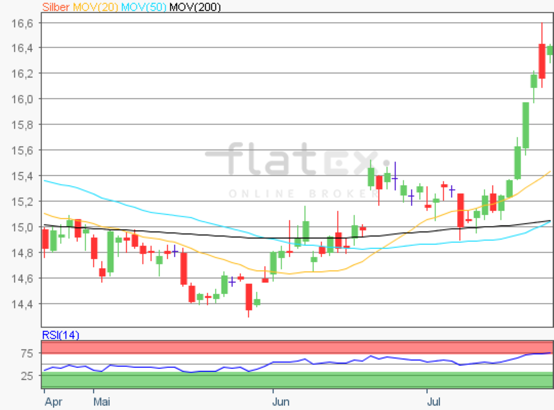 Vermeintlich unsichere Zeiten führen oft zu Bewegungen in sichere Häfen. Neben dem Edelmetall Gold konnte davon in den letzten Wochen auch Silber profitieren, welches sich rund einen US-Dollar je Feinunze verteuerte.