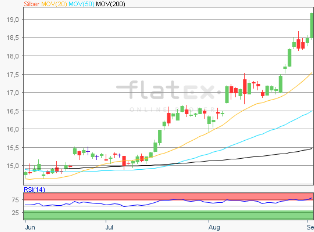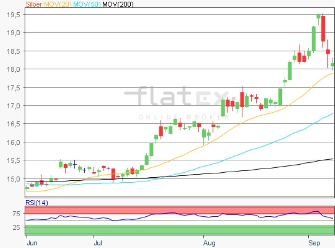 Der Preis für eine Feinunze Silber befand sich bis zum 04. September in einem technisch enorm überkauften Marktszenario.